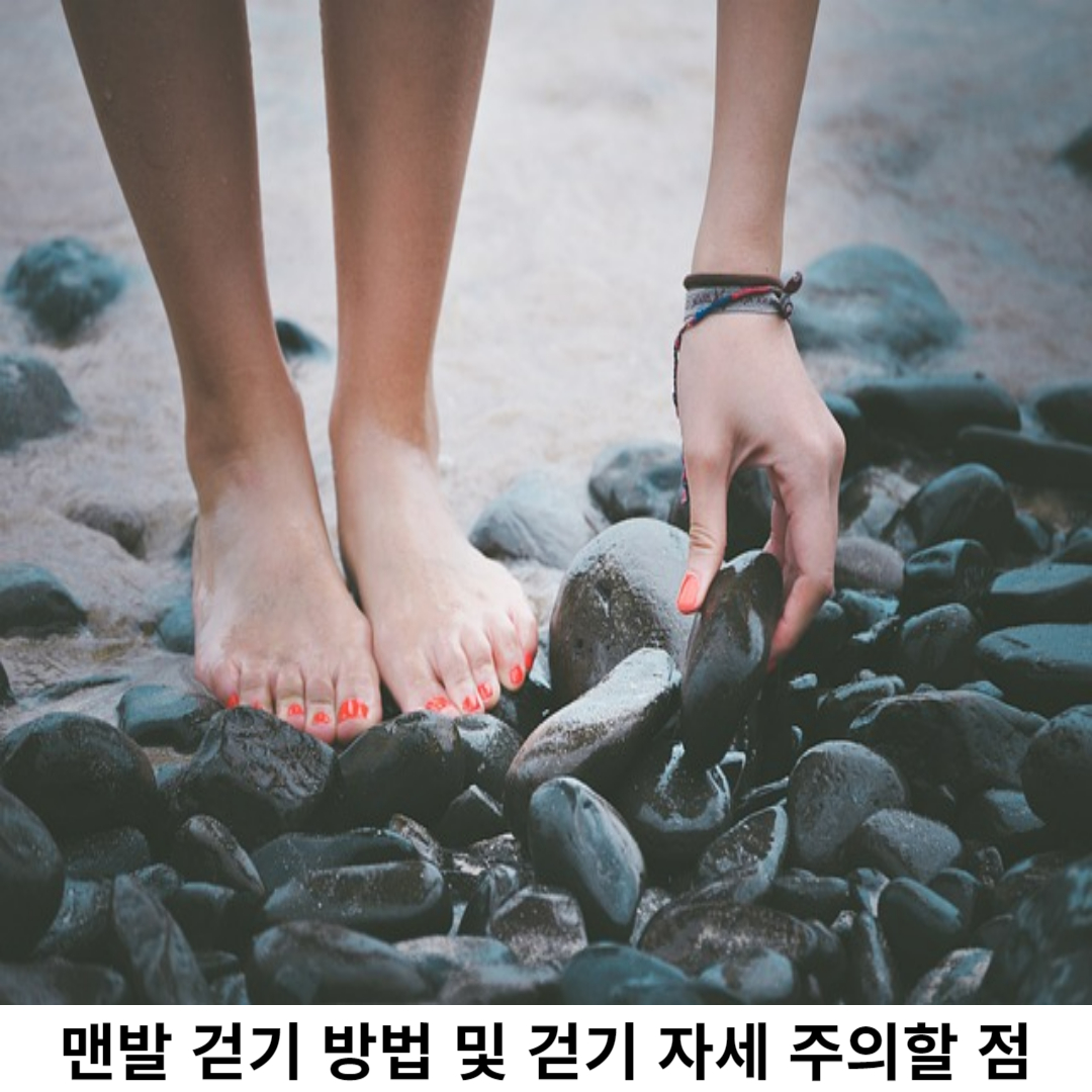 맨발로 걷는 것은 일상생활 속에서 신발을 신을 때와는 다르게 발에 더 편안함 느낌과 감각을 주게 됩니다. 이런 느낌을 천천히 몸에 습관이 되기까지 익혀가면서 걸어야 합니다.