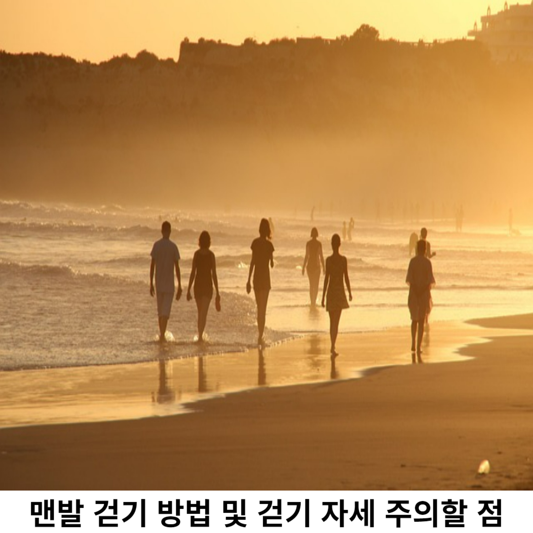 발을 땅에 닿게 할 때 발의 아치 자세를 고정하고, 발뒤꿈치부터 발끝까지 계속 압력을 전달하는 것이 중요한 포인트입니다. 또한, 맨발 걷기는 즐거움을 주는 활력 속 와 함께 새로운 경험을 주는 것이므로 천천히 걸으면서 자연과 공조하면서 느껴 보는 걸 추천드립니다.